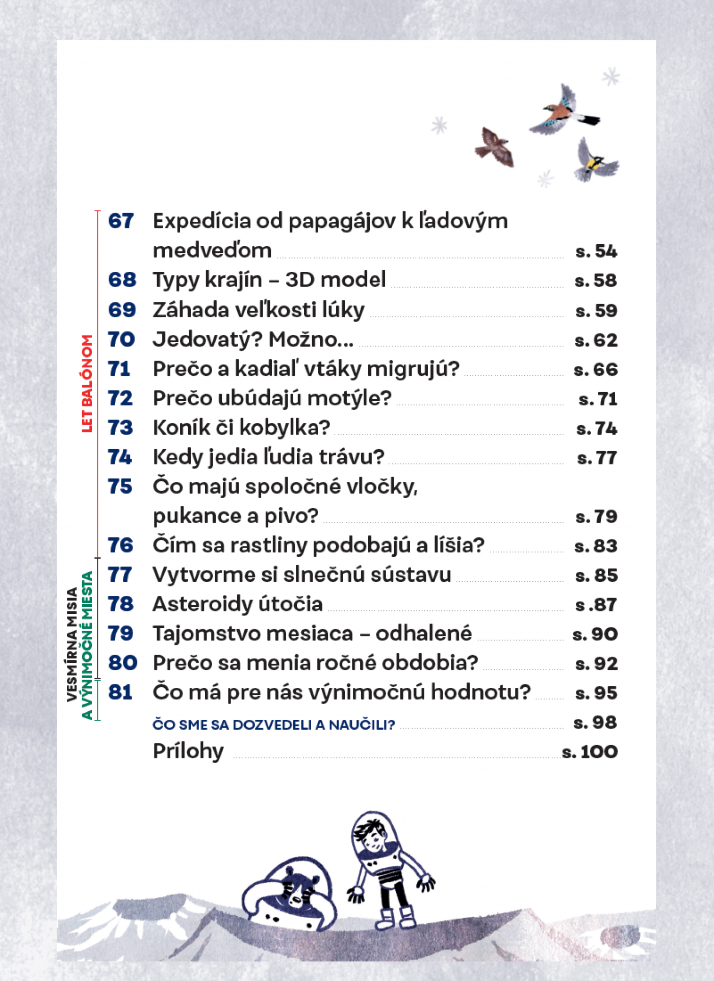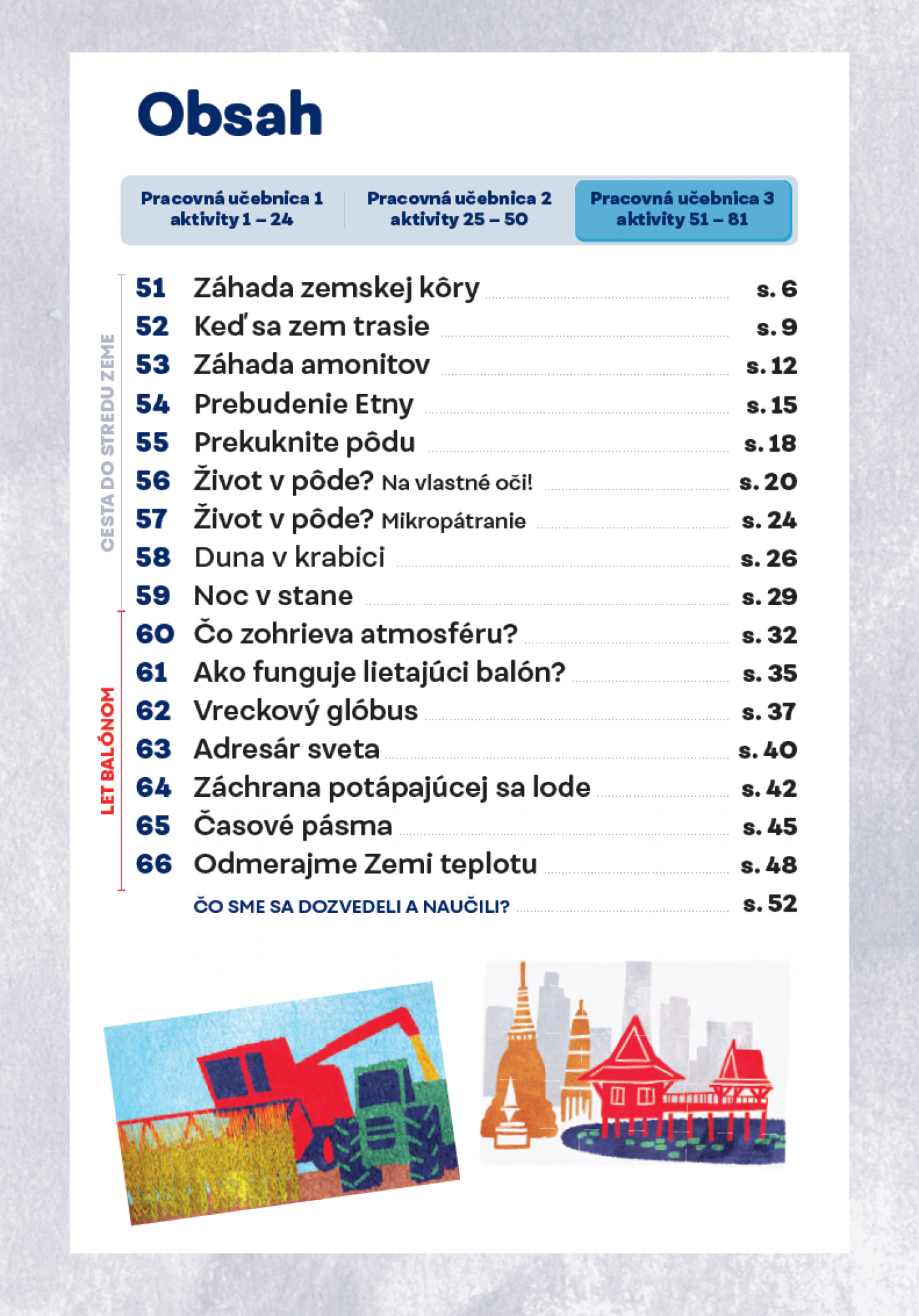 Pozývame žiakov a učiteľov biológie a geografie na bádateľskú expedíciu s tematickými celkami Cesta do stredu Zeme, Let balónom, Vesmírna misia a Výnimočné miesta, ktoré ponúkajú 31 aktivít. Pracovná učebnica je koncipovaná na princípe, kedy si žiaci priebežne pod odborným a citlivým vedením učiteľa aktívne tvoria vlastnú učebnicu. Budú riešiť úlohy individuálne aj v skupinách, formulovať predpoklady, rozmýšľať v súvislostiach viacerých predmetov, experimentovať, tvoriť modely, pozorovať, diskutovať a tvoriť vlastné závery.