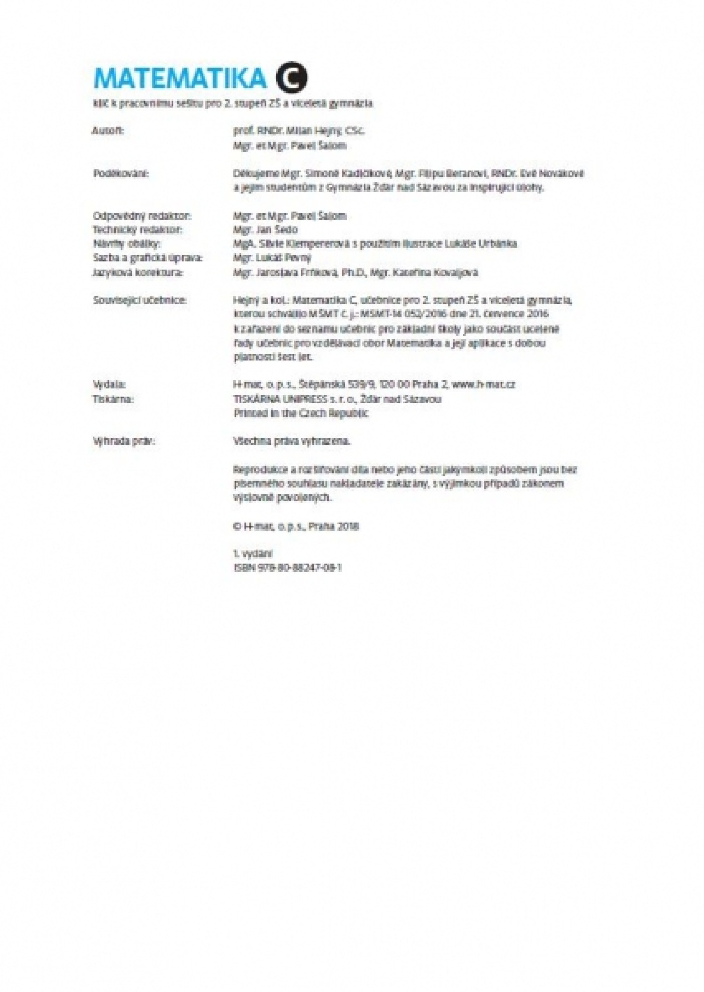 Matematika C - kľúč k pracovnému zošitu (ČJ)