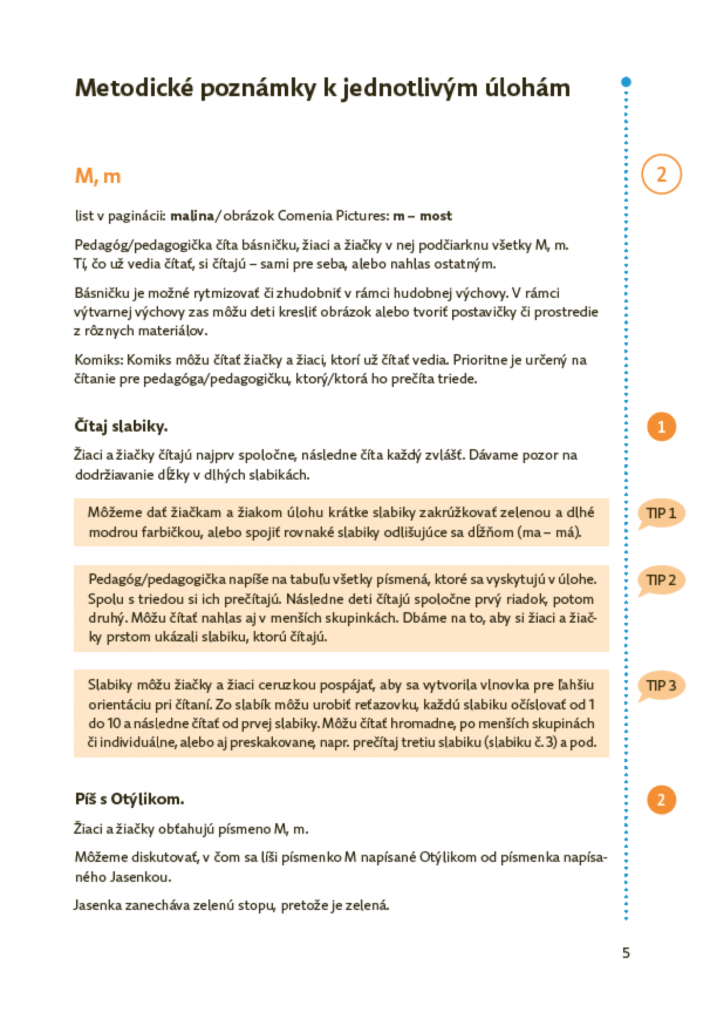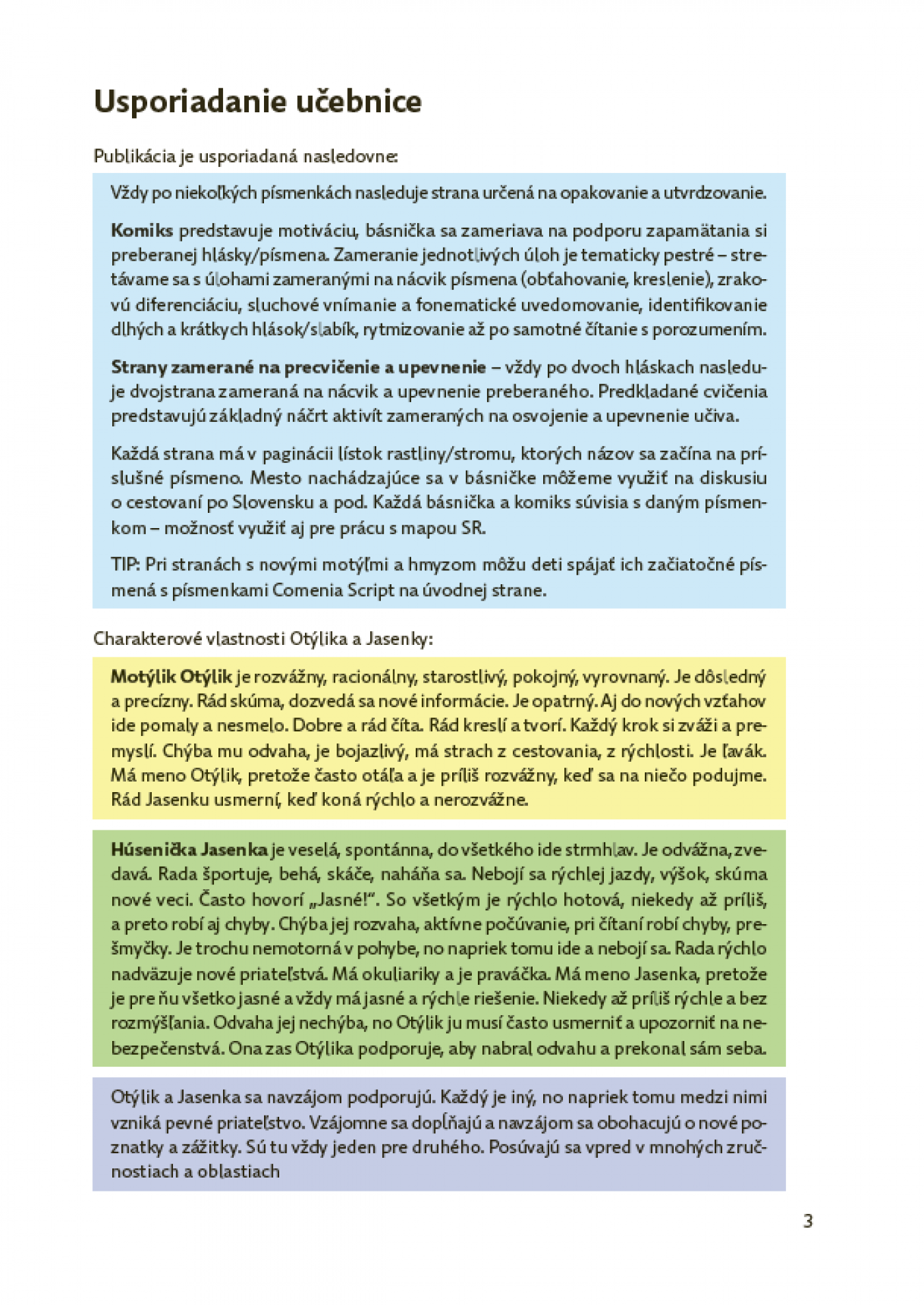 Metodická príručka obsahuje odporúčania pre prácu so šlabikárom pre bežné deti a zohľadňuje aj potreby žiakov a žiačok so zdravotným znevýhodnením či zo sociálne znevýhodneného prostredia i detí s nadaním.