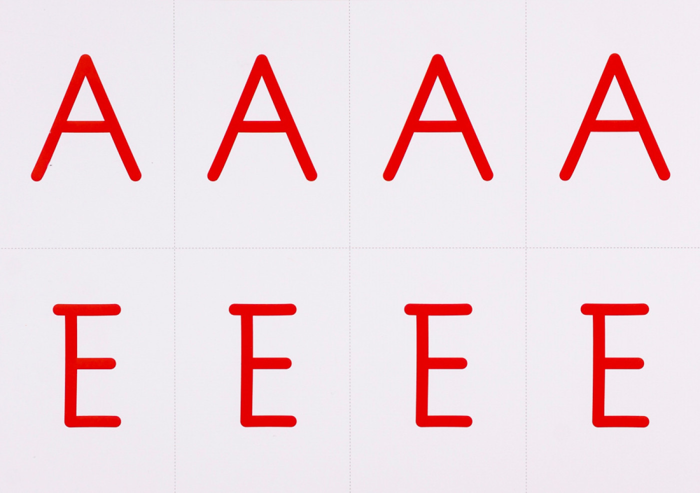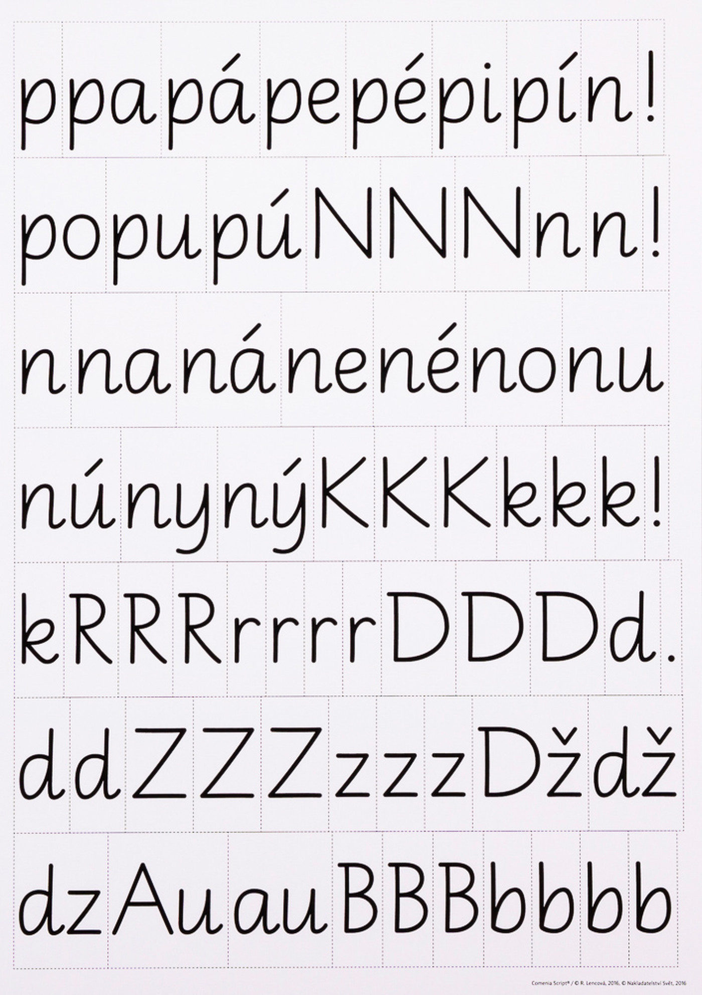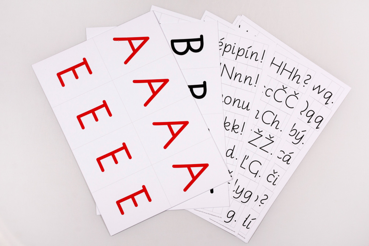 Písmená veľkej abecedy vo formáte A4 určené na vystrihovanie. Pri písmenách s diakritikou sú listy obojstranné, samohlásky sú odlíšené červenou farbou. Malé písmená a slabiky sa používajú na zostavovanie slov.