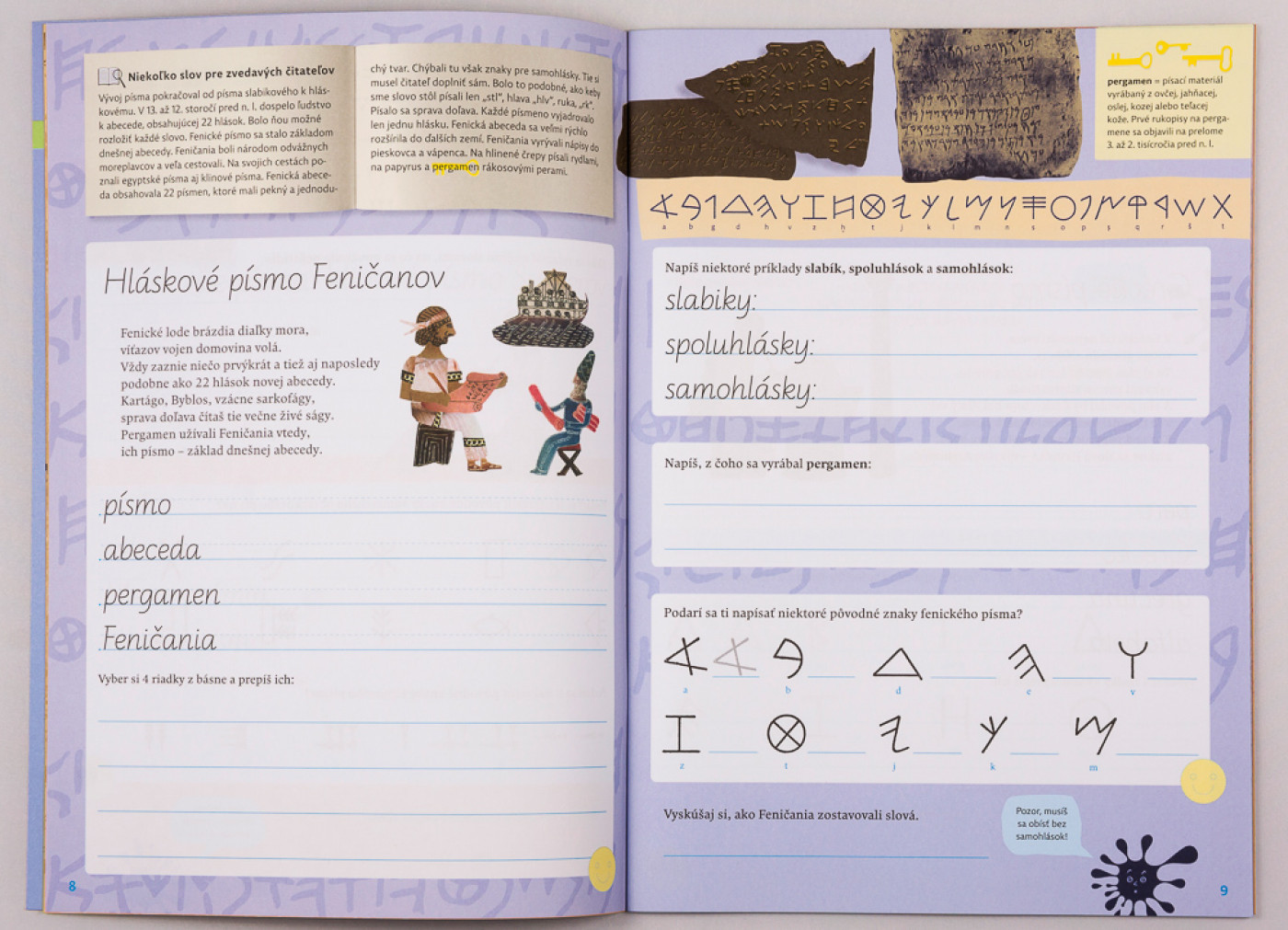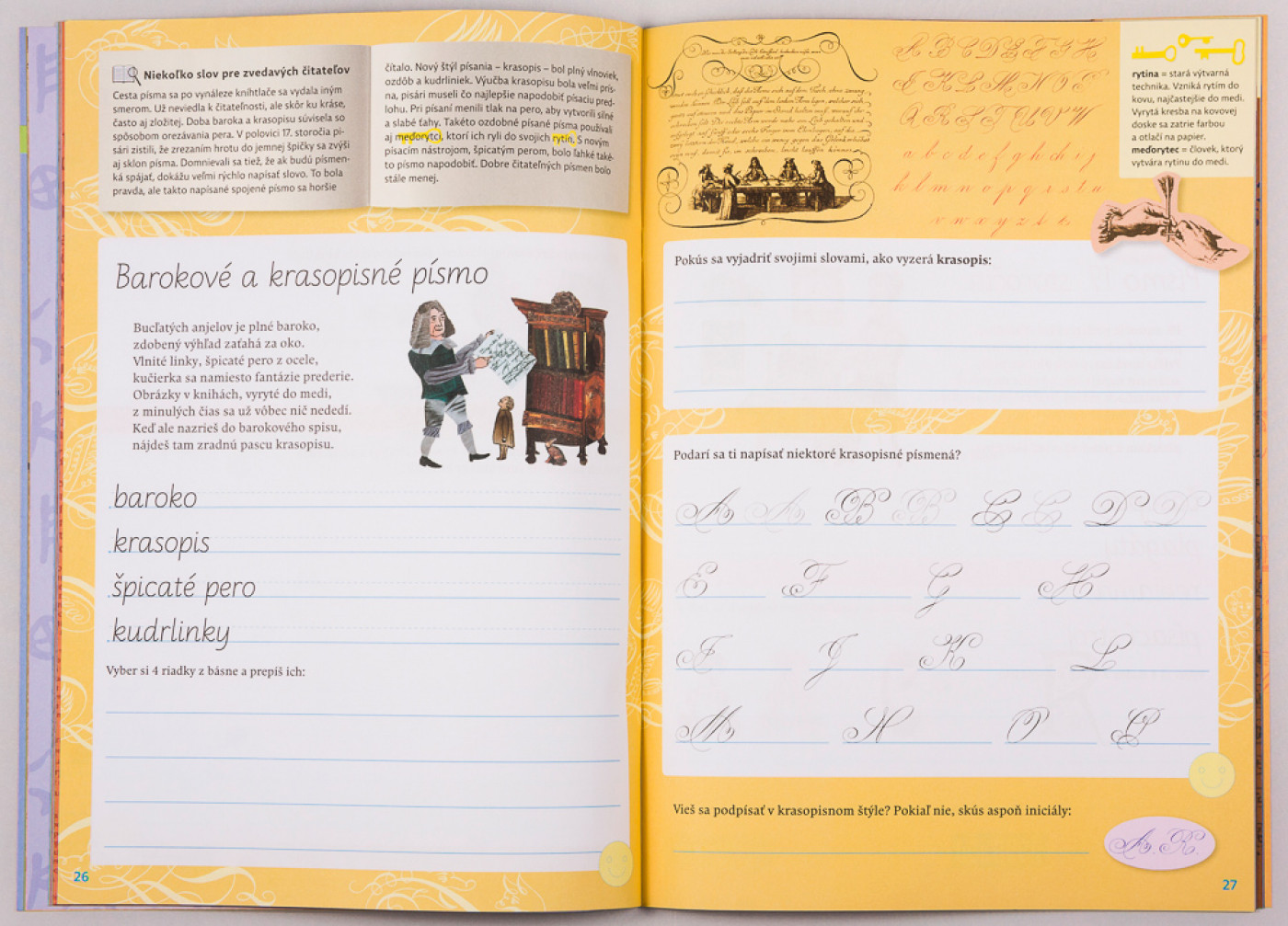 Plnofarebná a bohato ilustrovaná písanka nadväzuje na písanky Viem písať s Otýlikom 1, Viem písať s Otýlikom 2, Viem písať a Viem písať na cestách. Písanka je určená pre žiakov 3. - 9. ročníka a dáva nahliadnuť do histórie písma a umožňuje putovať v čase od počiatkov písma až po súčasnosť.